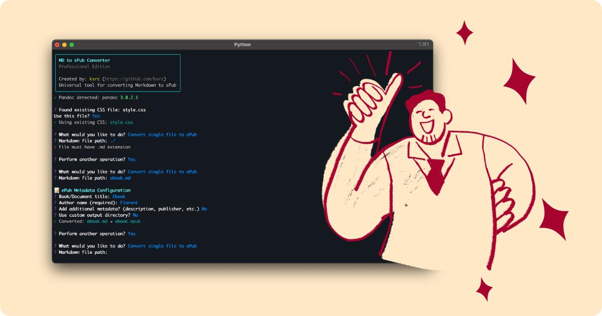 md_to_epub est sur GitHub avec une licence permissive. N'importe qui peut l'utiliser, le modifier, le redistribuer. Cette ouverture oblige à maintenir un niveau de qualité élevé.