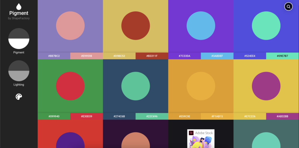 Histoire de changer un peu des habituelles machines à gaz disponibles en ligne, Pigment par ShapeFactory est un générateur simple de palette de couleurs.